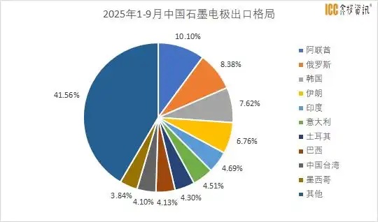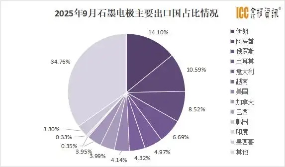 從出口國(guó)別來(lái)看,伊朗、阿聯(lián)酋和俄羅斯是中國(guó)石墨電極本月出口的主要目的地。